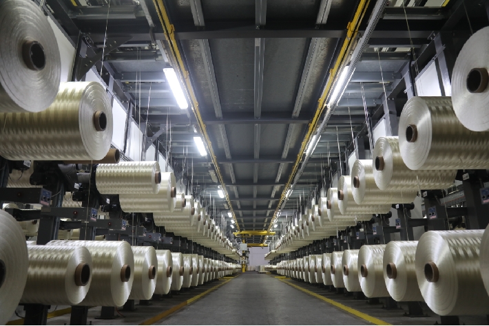 目前擁有5條完整的碳纖維生產線,同時采用連續(xù)聚合、間歇聚和濕法紡絲、干噴濕紡工藝進行生產,碳纖維年生產能力5000噸。